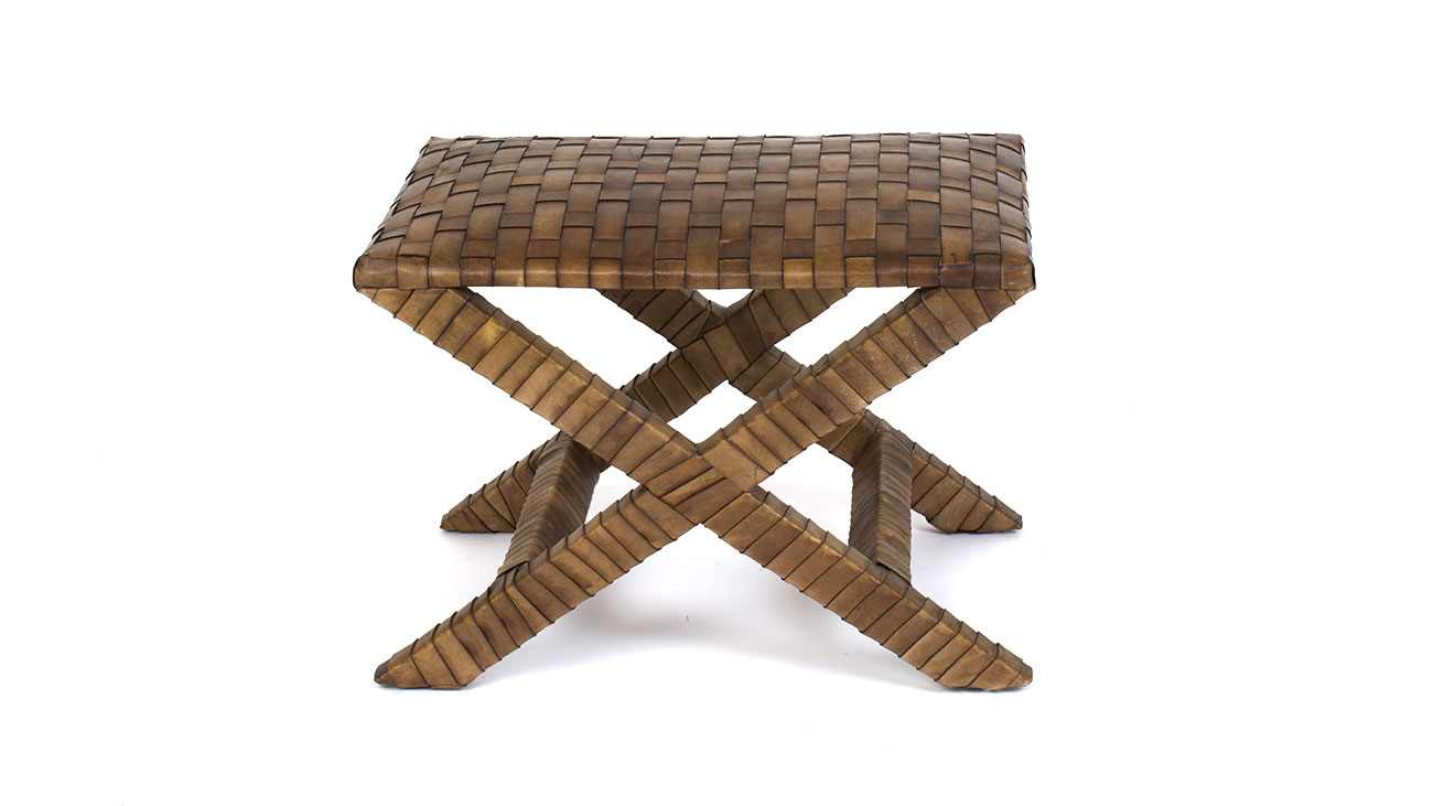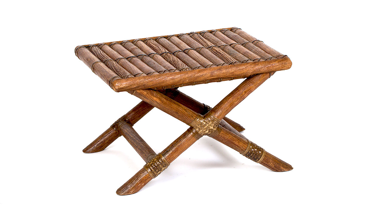 Índia Acabamento: estrutura em rottin com armações em couro.L: 0,65m P: 0,50m A: 0,42m Data: 2025 Categoria: Banco Tags: Bancos