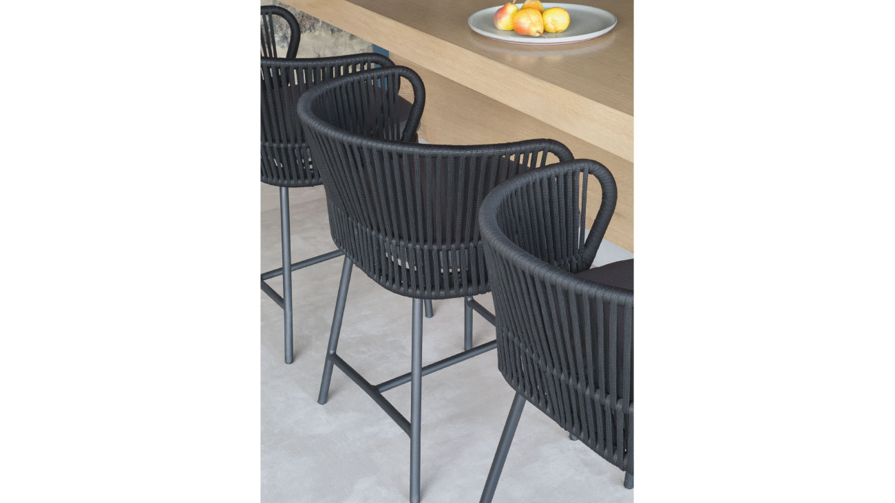 Aurea Acabamento: estrutura em alumínio e tricô 10mm, com almofada solta.L: 0,61m P: 0,56m A: 0,80m Data: 2025 Categoria: Banqueta Tags: Banquetas