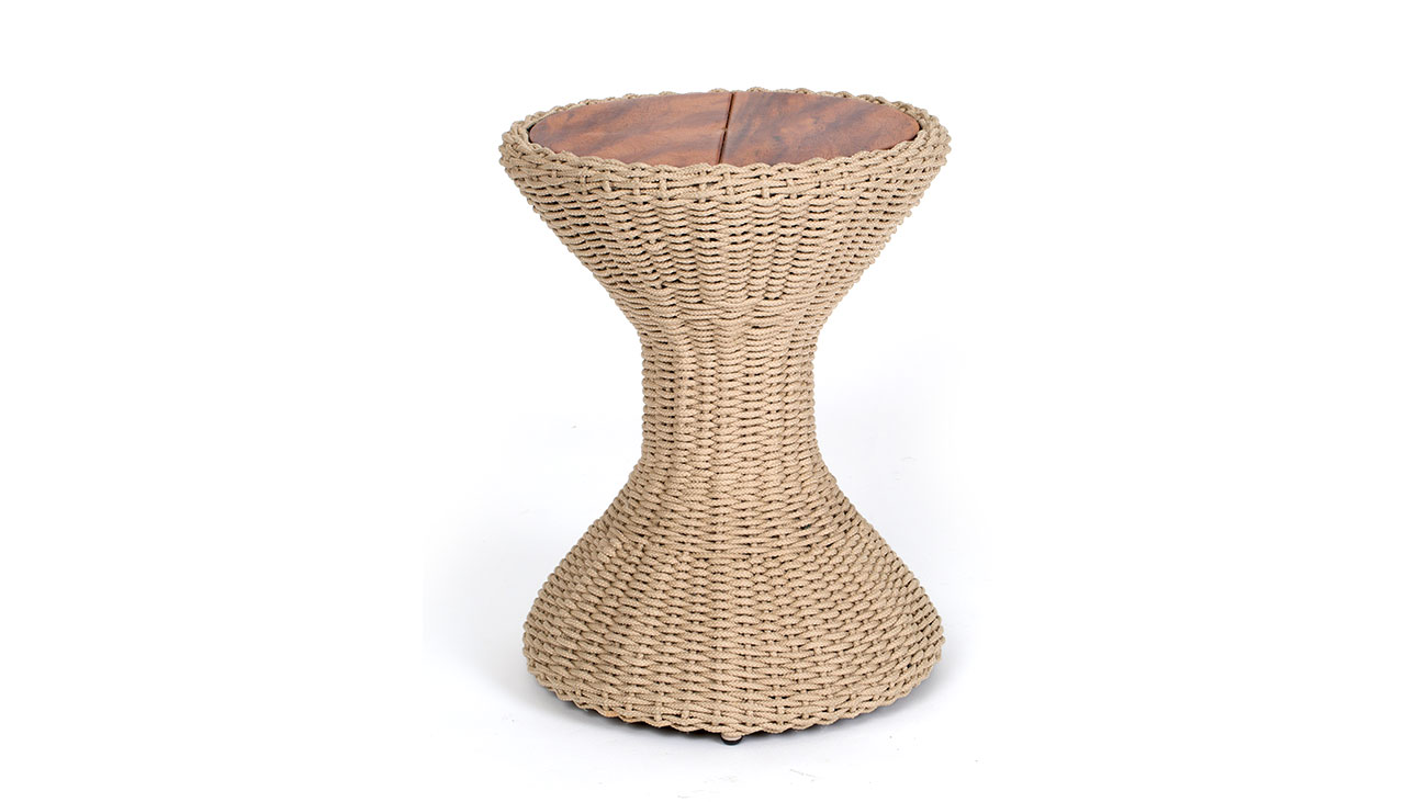 Cora Acabamento: estrutura em alumínio e corda 6mm com tampo em madeira.L: 0,42 A: 0,55m Data: 2025 Categoria: Mesa Lateral Tags: Mesas Laterais