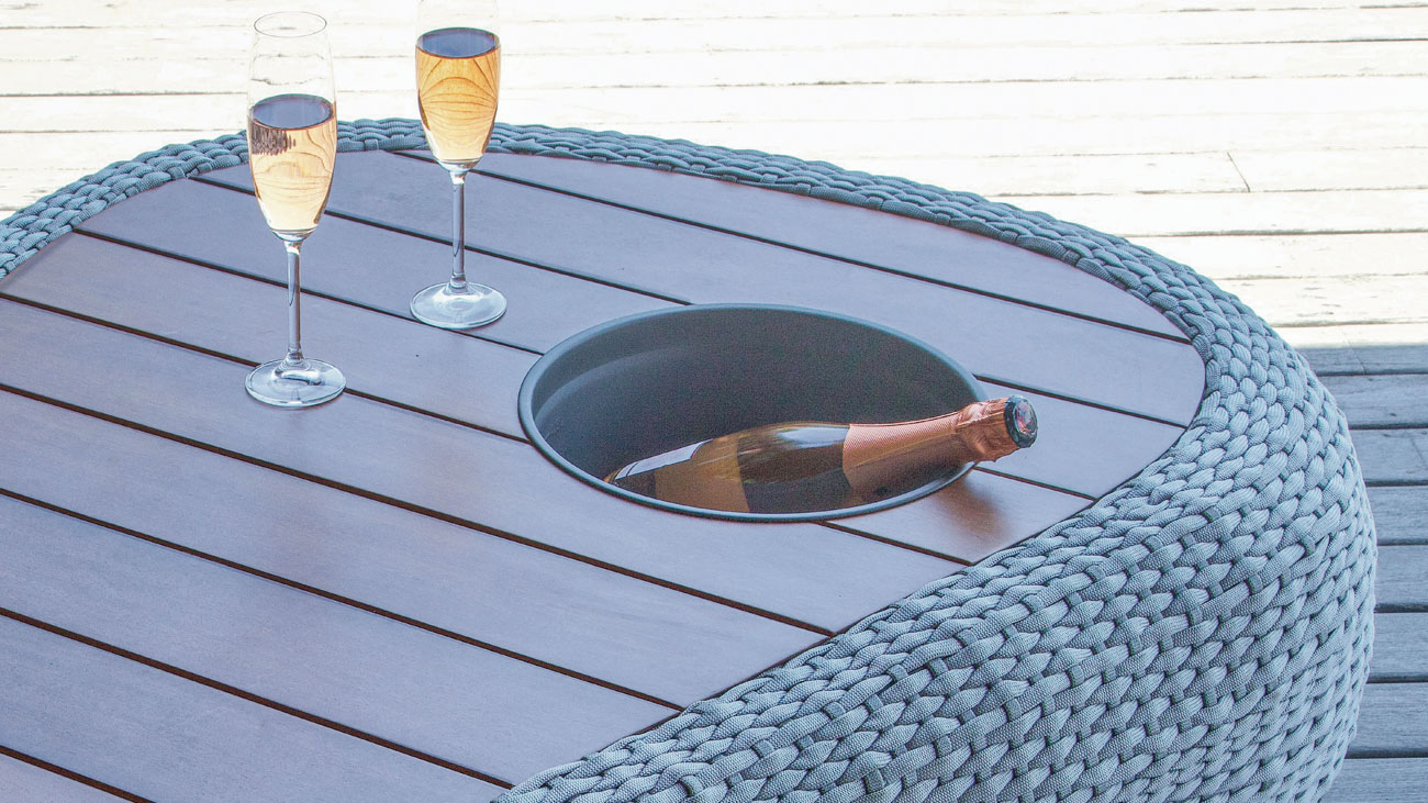 Dina Acabamento: estrutura em alumínio e tricô 10mm com tampo em madeira.C: 1,20 L: 0,80 A: 0,35m Data: 2025 Categoria: Mesa de Centro Tags: Mesas de Centro