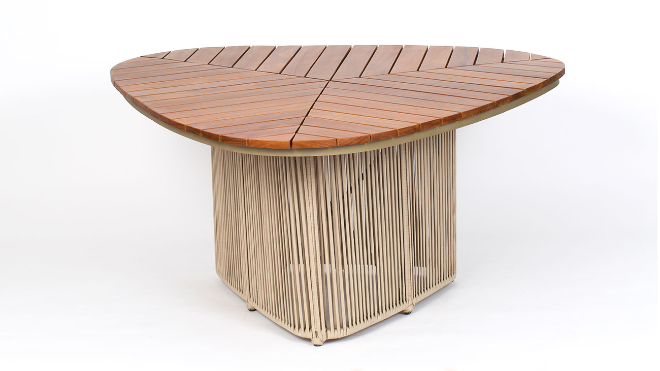 Acabamento: estrutura em alumínio e tricô 10mm com tampo em madeira.