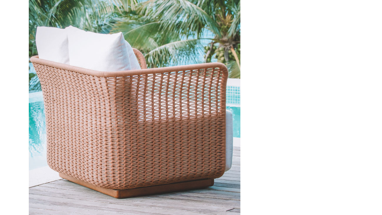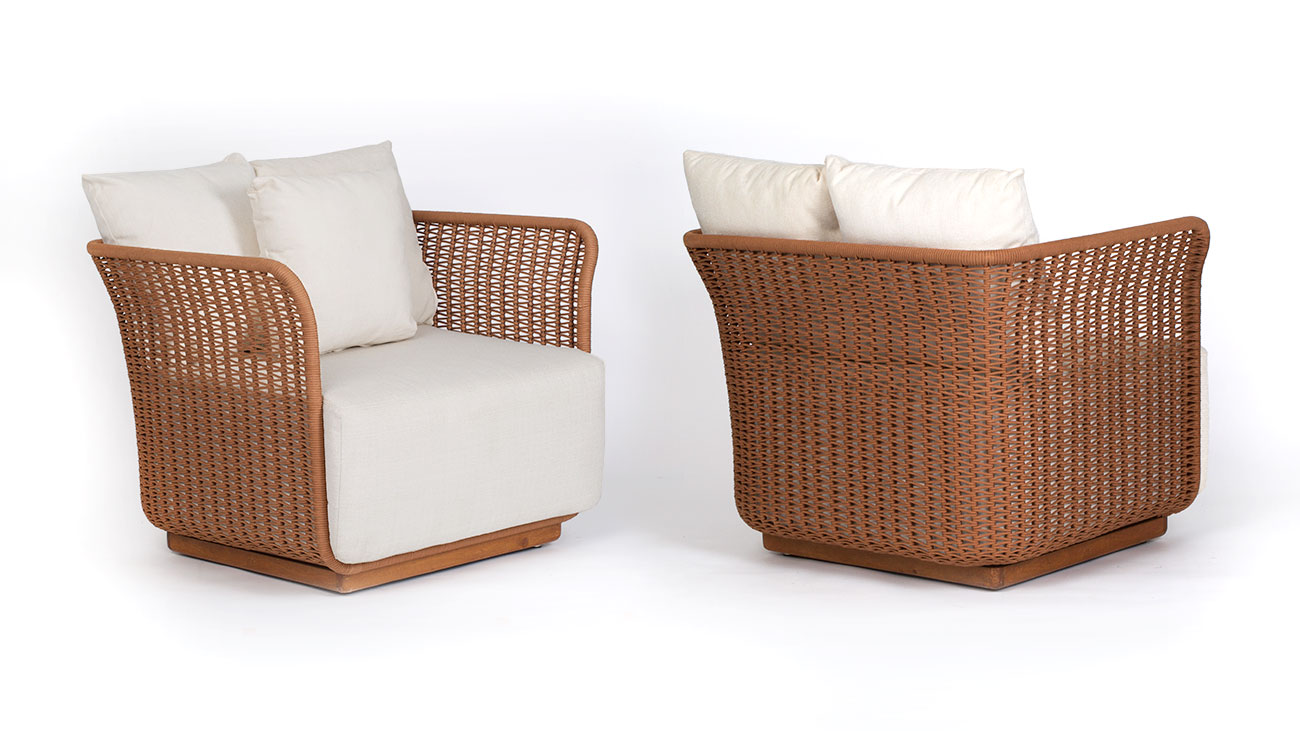 Lauren Acabamento: estrutura em alumínio e corda 6mm, rodapé em madeira cumaru, almofada de assento e encosto solta.L: 0,99 P: 0,90m A: 0,95m Data: 2025 Categoria: Poltrona Tags: Poltronas