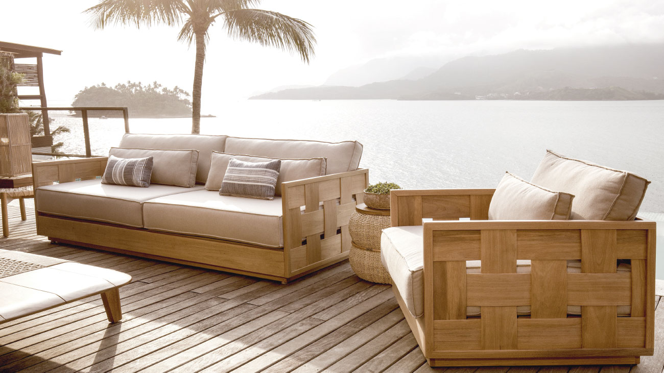 Acabamento: estrutura em madeira com almofadas de encosto soltas.